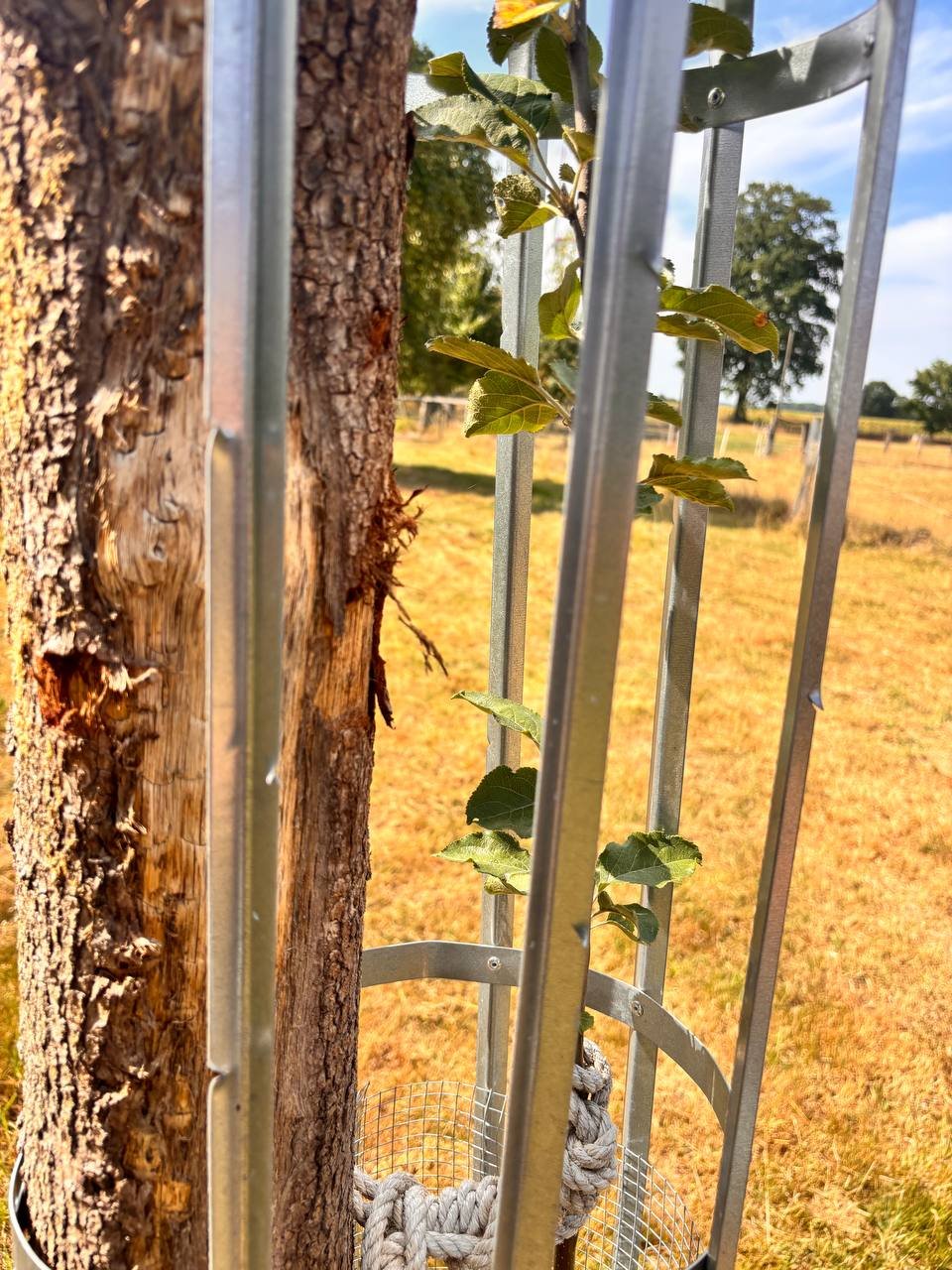 Wenn Sie (Obst-)Bäume auf beweideten Flächen wie Streuobstwiesen pflanzen, benötigen Sie zwingend einen zuverlässigen Verbissschutz, um Ihre Bäume dauerhaft zu schützen.